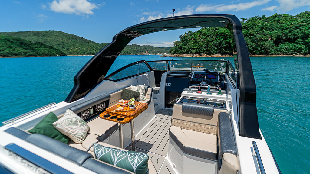 Elevando o conceito de lancha 30 pés, a Focker 300 envolve os sentidos com uma proposta de navegação moderna e tecnológica, através de um novo sistema de automação. Inspire-se com o design imponente e expressivo em cada detalhe, aproveite a liberdade do navegar na proa rebaixada e acomode-se na cabine completa do novo barco da nossa linha Cruiser.
